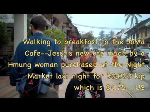 This first is a small clip that Jesse and I did this morning. The scenery here is beautiful and it is a very serene place. We will take some clips of Duncan and Jesse playing soccer as per Nathan's request. They have found some friends who play at 5pm every day... so we'll see how it goes. It is helpful to create fun for Jesse because he doesn't really want to walk around visiting Wats all day or do assignments. With a banana/yogurt smoothie in his tummy and a soccer ball in hand...plus an hour long foot massage once in awhile... life is pretty good in Luang Prabang. He is finding time to read quite a bit and we are giving him writing assignments like... write a page about "Buddhism" and what the novice monks do, or "who was Ho Chi Minh?" He does his research on the computer for awhile and then writes up a page or more. Duncan corrects his spelling and makes him rewrite the words he's mis-spelled. We are probably going to stay longer here instead of making the 10 hour bus trip south to Vientiene--it will be nice to settle in here for awhile to feel the vibe and let it soak into our souls.